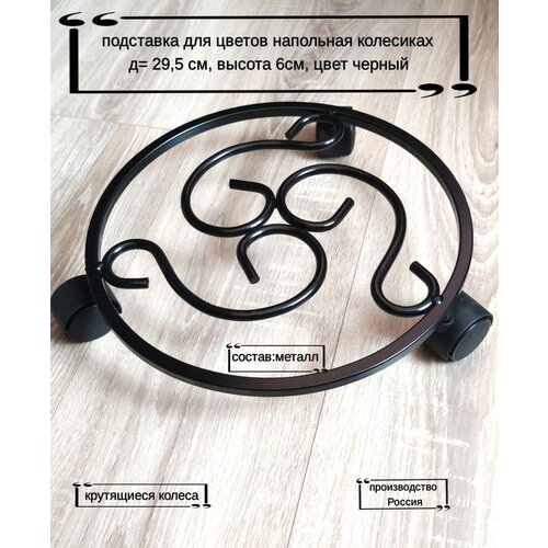 Подставка для цветов металлическая напольная на трех колесах. Диаметр 29,5 см.