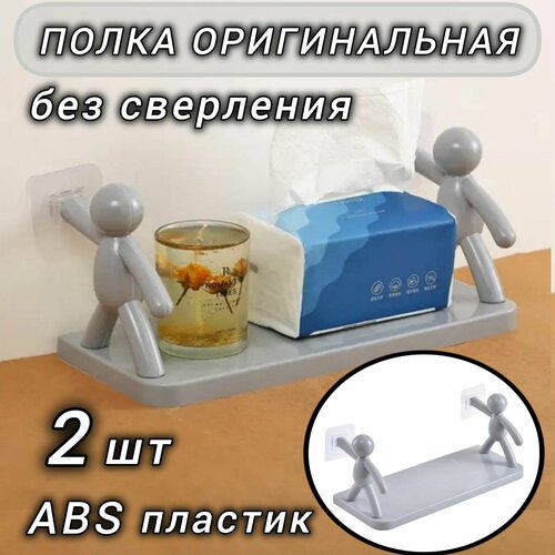 Полка для ванной и кухни настенная с человечками, 2шт серая