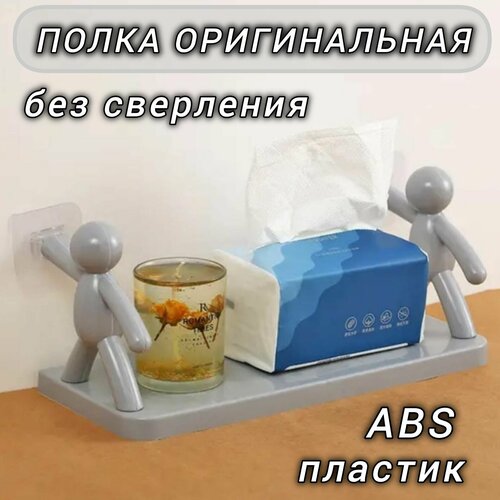 Полка человечки для ванной и кухни настенная 1шт серая