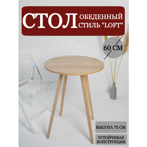 Стол кухонный лофт обеденный круглый, ножки дерево "Дуб", ЛДСП цвет "Дуб сонома" 60х75 см