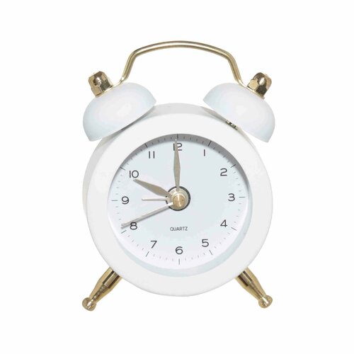 (W)Часы-будильник, 8 см, на ножках, металл/стекло, круглые, бело-золотистые, Ретро, Dial