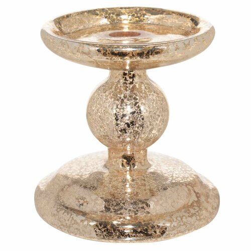 (W)Подсвечник, 12 см, для одной свечи, на ножке, с подсветкой, стекло, шампань, Patina