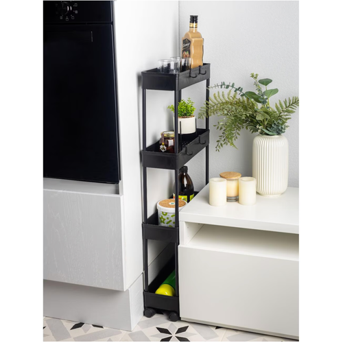 Этажерка на колесиках 4-х уровневая , стойка, стеллаж, полка, для ванной кухни , хранение продуктов / Узкий 4 яруса: 87x12.5x40cm