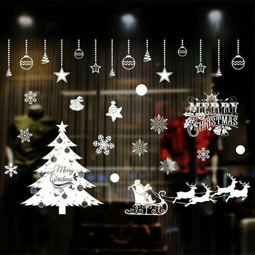 Рождественская наклейка на окна. Праздничные наклейки. Настенное панно новогоднее. Рождественское украшение для дома и оформления витрины магазина.