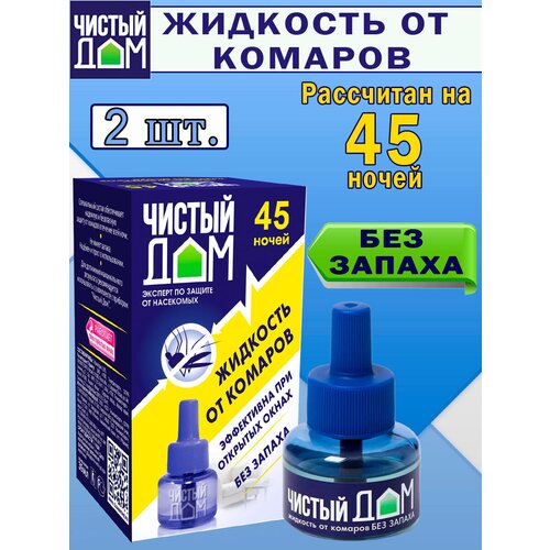 Жидкость от комаров для фумигатора, без запаха 45 ночей, 2 штуки