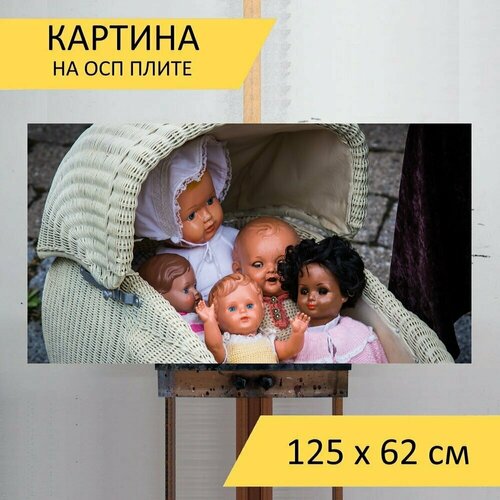 Картина на ОСП 125х62 см. "Марионетка, куклы коляска, бродяга" горизонтальная, для интерьера, с креплениями