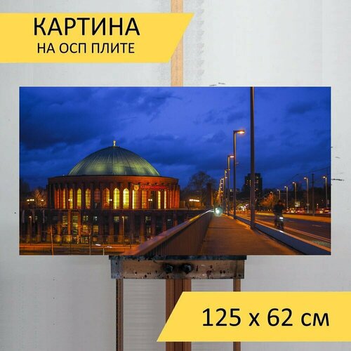 Картина на ОСП 125х62 см. "Архитектура, концертный зал, строительство" горизонтальная, для интерьера, с креплениями