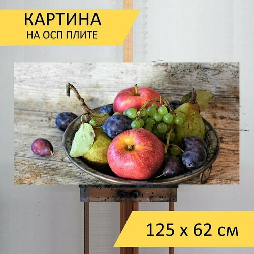 Картина на ОСП 125х62 см. "Фрукты, еда, тарелка с фруктами" горизонтальная, для интерьера, с креплениями