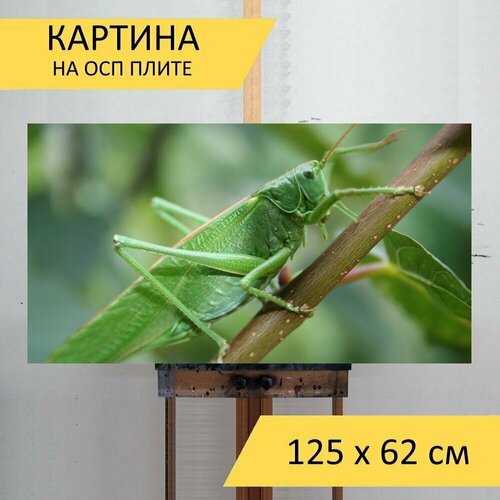 Картина на ОСП 125х62 см. "Кузнечик, норск, характер" горизонтальная, для интерьера, с креплениями