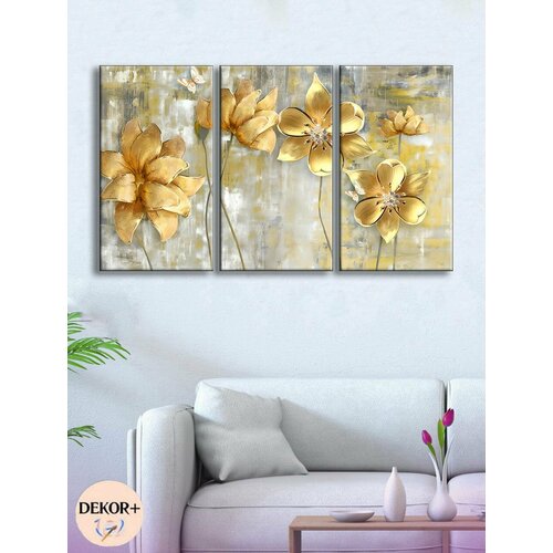 Интерьерная модульная картина на стену из трех частей 60х100 см А12 " Цветы "