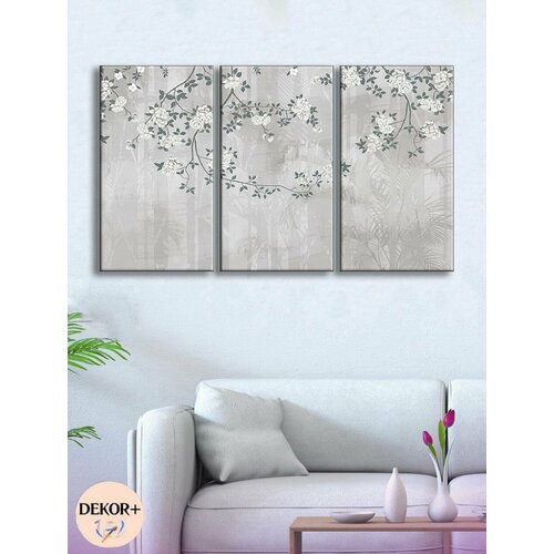 Интерьерная модульная картина на стену из трех частей 60х100 см А12 " Цветы "