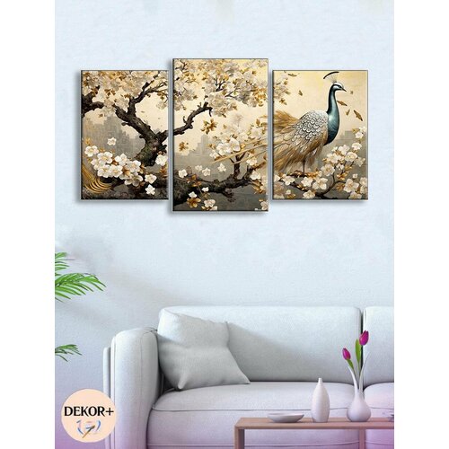 Цены на Интерьерная модульная картина на стену из трех частей 60х100 см А16 " Магнолия " бежевый в г. Москва