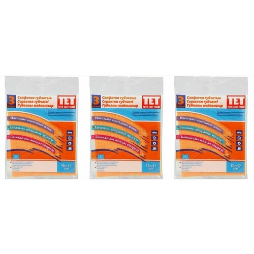 TET Салфетка губчатая 15х17 см, 3 шт/уп, 3 уп