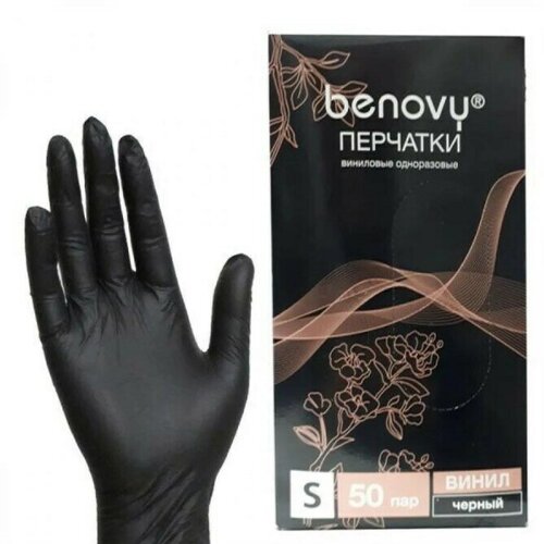 Перчатки виниловые Benovy, размер S, 50 пар, 100 штук, черные
