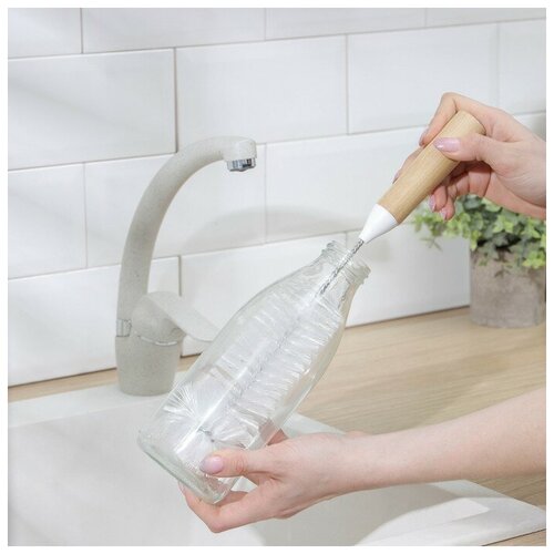 Ёрш для посуды Доляна Meli, 34х6 см, бамбуковая ручка, замшевая петелька