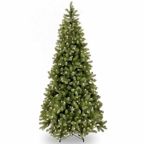 Искусственная ель "Кэррингтон" (литая хвоя PE+PVC), зелёная, 400 тёплых белых LED-огней, 228 см, National Tree Company