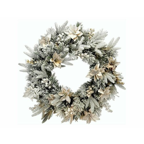 Хвойный венок Colonial, заснеженный, хвоя - PE+PVC+леска, 61 см, National Tree Company