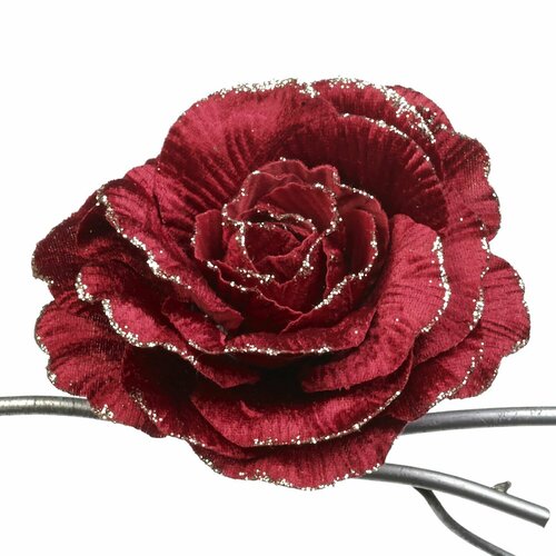 Роза GOODWILL M&G на клипсе цвет бургунди с золотом 15 см (цена за набор из 2шт)