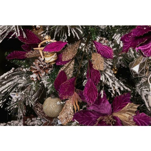 Искусственная пуансеттия марселла на клипсе бордовая, текстиль, 28 см, Goodwill FF99016