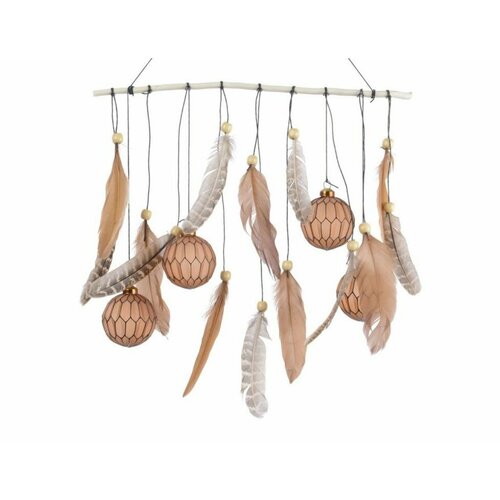 Подвесное украшение с елочными шарами TENEREZZA DELL'ARIA, перо, стекло, дерево, 38х35 см, Kaemingk 510042