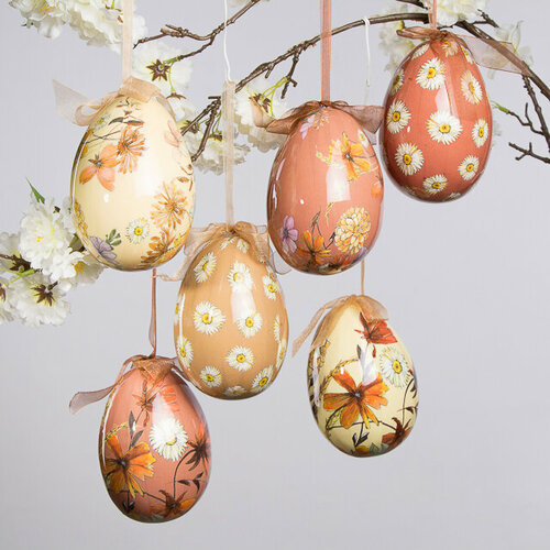 Декоративные пасхальные яйца цветочный этюд, подарочный набор, 6 см (упаковка 12 шт.), Kaemingk
