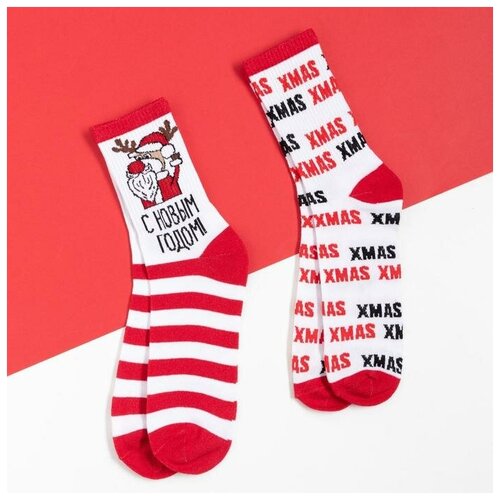 Набор мужских носков Kaftan "С Новым Годом!", размер 41-44, 27-29 см, 2 пары
