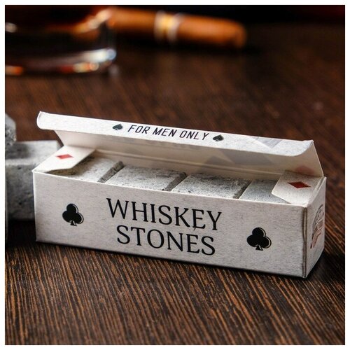 Камни для виски "Крепкий", в шкатулке с магнитом, 6 шт. Раньше в виски было принято добавлять кубики льда, так как в охлаждённом виде этот напиток вкуснее. Но при таянии лёд разбавляет виски водой, ухудшая его вкусовые качества. Эта проблема будет решена, если заменить лёд специальными каменными кубиками.