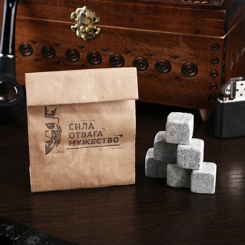 Дарим Красиво Камни для виски "Сила. Отвага. Мужество", в крафт пакете, натуральный стеатит, 6 шт