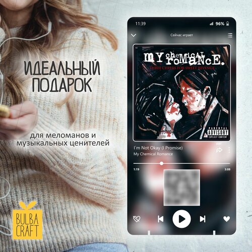 "My Chemical Romance - I'm Not Okay (I Promise)" Spotify постер, музыкальная рамка, плакат, пластинка подарок Bulbacraft (10х20см)