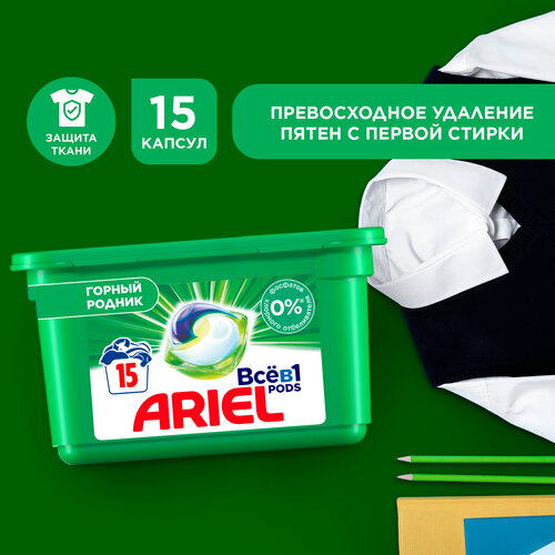 Ariel капсулы Pods Всё-в-1 Горный родник Капсулы для стирки, контейнер, 15 шт., 0.52 кг