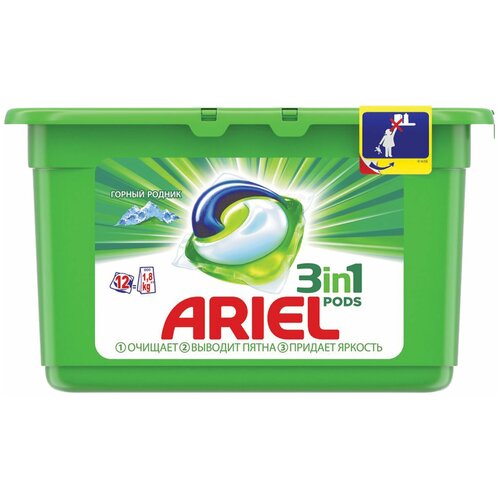 Средство для стирки в капсулах 12 шт. по 28,8 г ARIEL (Ариэль) «Горный родник»