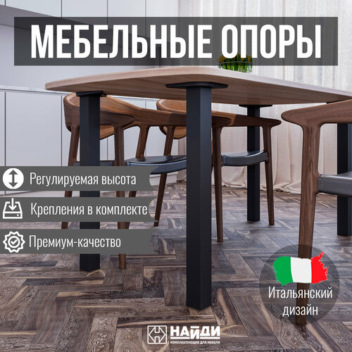 Опоры мебельные алюминиевые для столов квадратные рифленые 60*60*2,0 мм (комплект) (Черный муар)