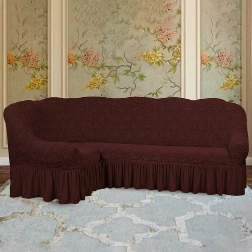 KARTEKS Чехол на угловой диван (правый угол) Raelyn цвет: темно-коричневый (300 см)