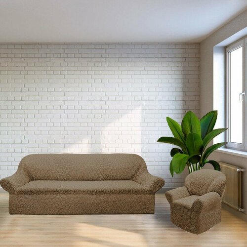 KARTEKS Комплект чехлов на диван и два кресла Millie цвет: светло-коричневый (185 см, 50 см - 2 шт)