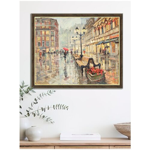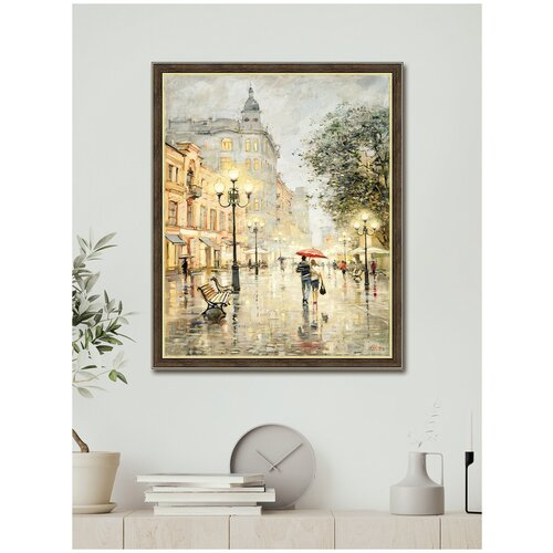 Картина на стену для интерьера "Арбатские огни", 40х50 см, на холсте бумажном/интерьерный постер в раме, город пейзаж, Москва/Графис