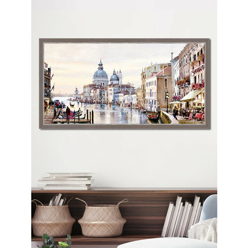 Картина для интерьера на стену "Водный путь", на бумажном холсте, в раме, большая, город Венеция/Графис
