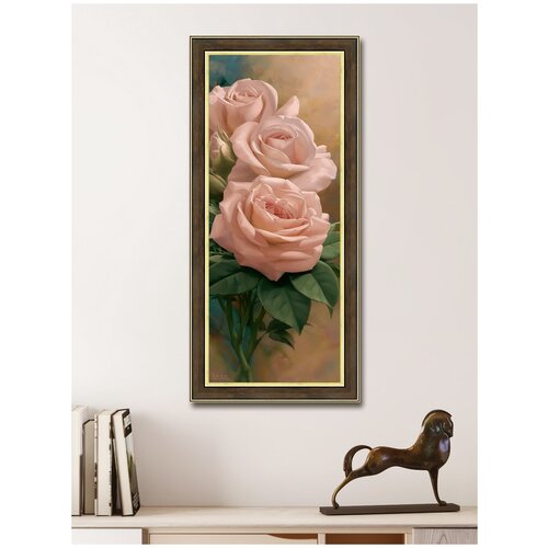 Картина постер на стену для интерьера "Дар природы 1", 20х50 см, на бумажном холсте, в раме, вертикальная, цветы, розы/Графис