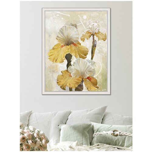 Картина постер на стену для интерьера "Романтические ирисы 1", 50х65 см/интерьерная картина на бумажном холсте, в раме, большая, цветы/Графис