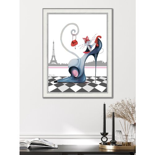 Картина постер для интерьера на стену "Минни", 30х40 см, на бумажном холсте, в рамке, кот, кошка/Графис