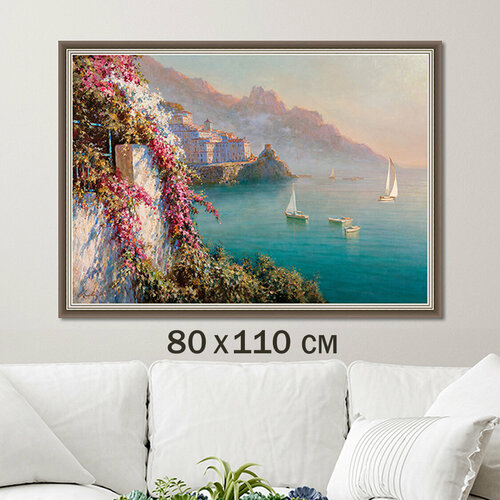Картина для интерьера "Берег Италии", 70х100 см, на стену, на бумажном холсте, в раме, море пейзаж/Графис