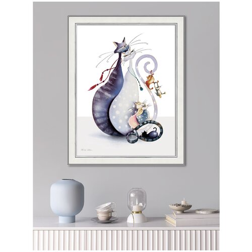 Картина на стену для интерьера "Счастливая семейка", 30х40 см, в рамке, с котиками, про семью/Графис