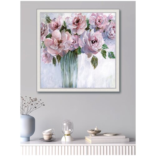 Цены на Картина на стену для интерьера "Нежность" 57х72см, на бумажном холсте, в раме, большая, с цветами/Графис бежевый в г. Москва