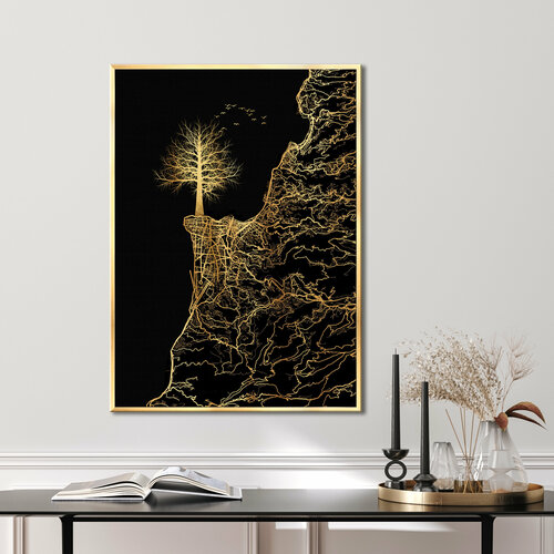 Картина на стену для интерьера "Золотое дерево II", 50х70 см, большая вертикальная, в раме/Графис