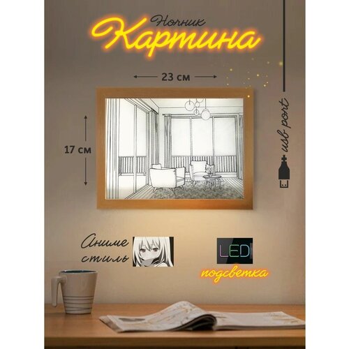 Картина ночник на стену интерьерная c подцветкой 31 х 22 желтый