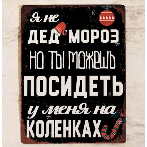 Смешная новогодняя табличка картина с надписью Я не дед мороз, но посиди на коленках, прикольный подарок для дома с юмором, металл, 20х30 см.