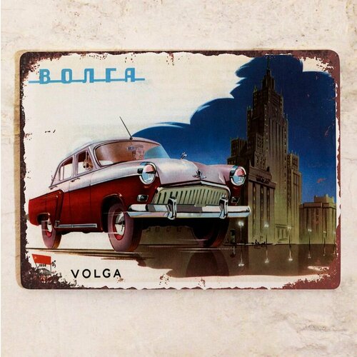 Ретро реклама автомобиля Волга для гаража, металл, 20х30 см