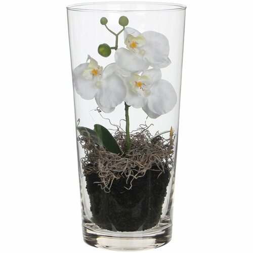 Искусственная орхидея фаленопсис в горшке, белая, 48 см, Edelman