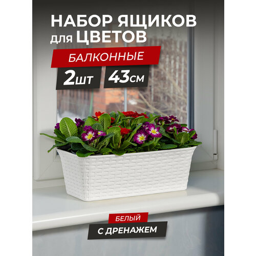 Балконный ящик для цветов Ротанг с дренажем 2шт / горшок цветочный / длина 43см, цвет слоновая кость