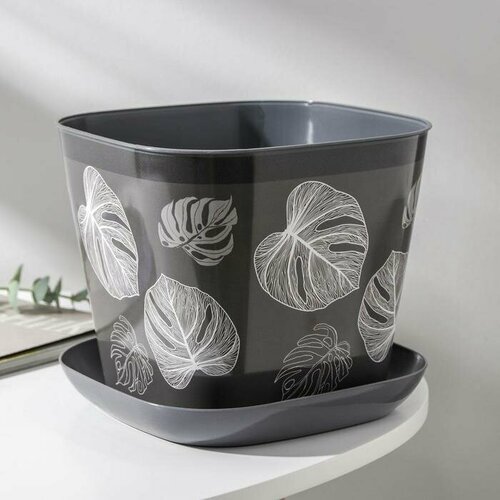 Горшок с поддоном "Листопад", 3,7 л, цвет тёмно-серый