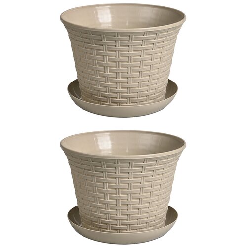 Кашпо Ротанг круглое с поддоном 8л 2 шт / горшок для цветов / горшок цветочный, цвет латте